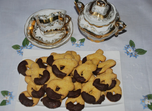 Lasciate raffreddare, poi intingete l’estremità arrotondata dei biscotti nel cioccolato fondente che avrete fatto sciogliere a fuoco basso per un paio di minuti, poi mettete in luogo fresco per far solidificare il cioccolato.