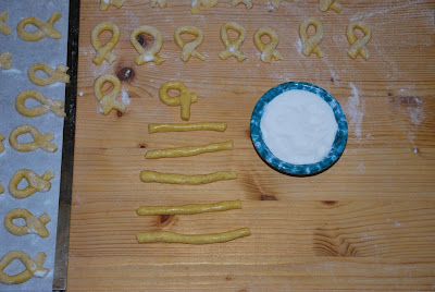 Con le mani fate dei rotolini del diametro di circa 8 mm, lunghi circa 8 cm, accavallate le estremità e li passate in un po’ di zucchero a velo.