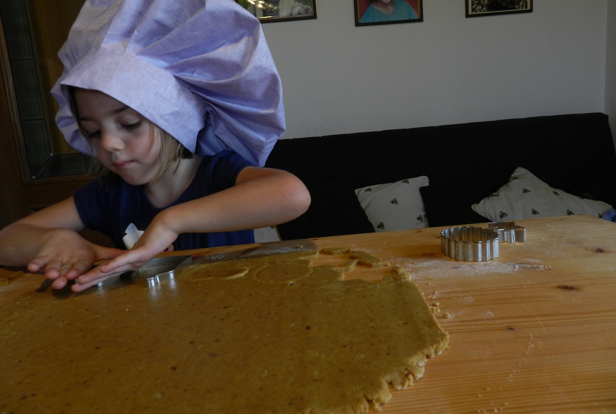 con gli stampini ritagliate i biscotti della forma preferita.