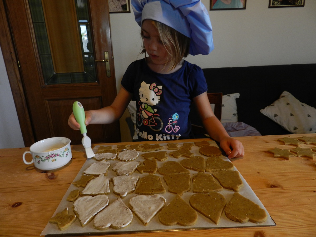 Se vi piace spennellate la superficie con un po’ di glassa (preparata sbattendo ½ albume con 3 cucchiai di zucchero a velo).