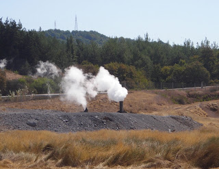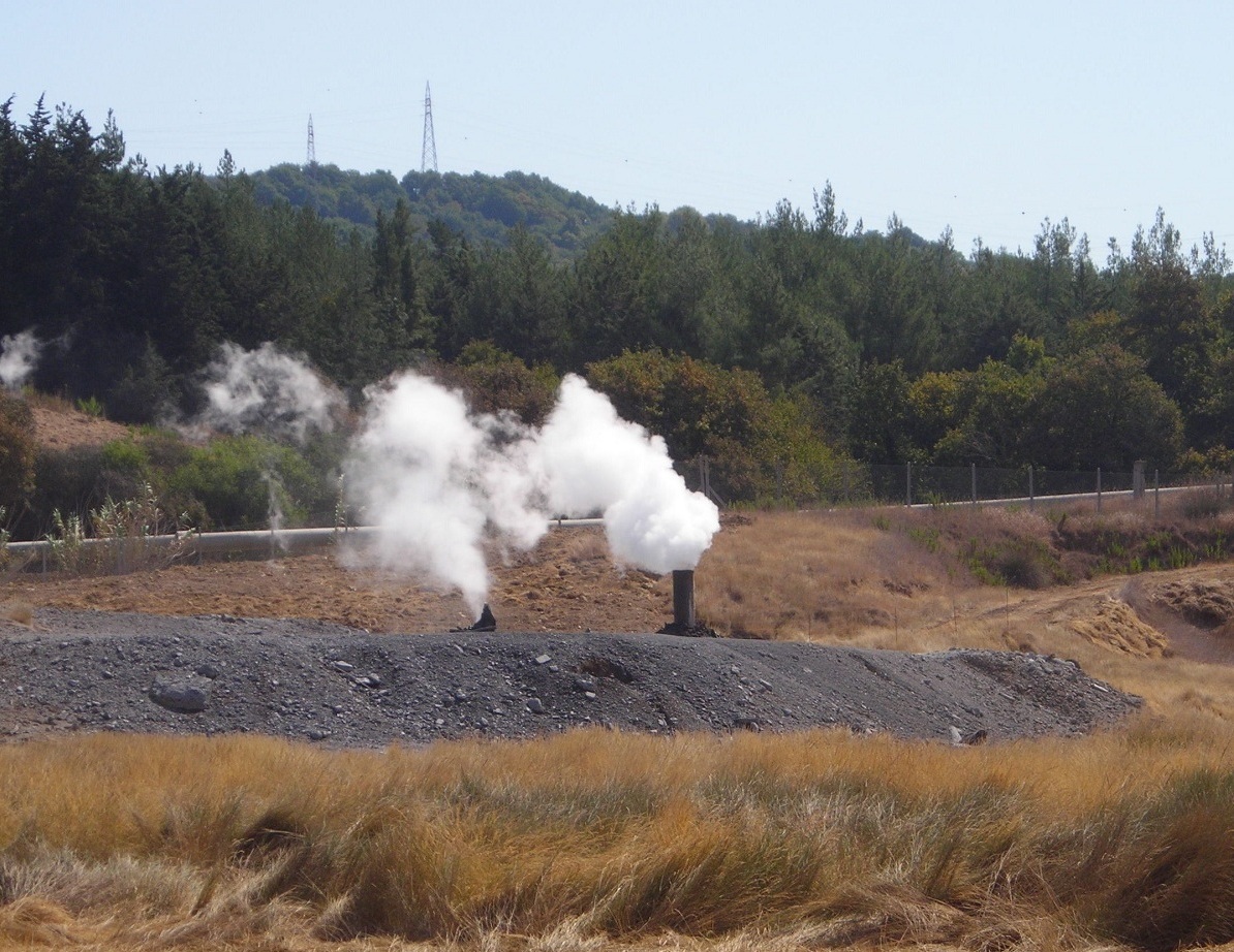 Cartello esplicativo e pozzi geotermici