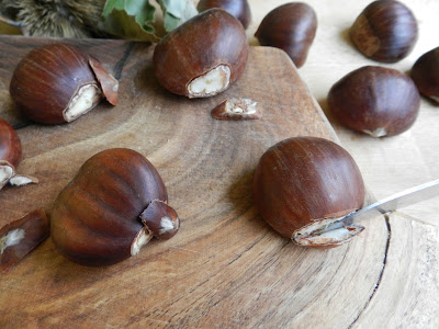 Lessate le castagne avendo cura di tagliare un pezzetto di buccia per fare meglio poi a toglierla.