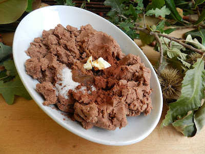 Incorporate burro, zucchero, cacao, caffè ed impastate bene finché il composto si presenta ben compatto e malleabile.