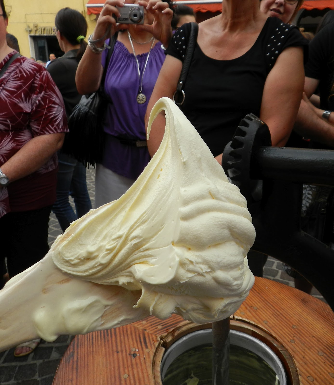 dal gelataio che faceva la dimostrazione di come si faceva il gelato una volta, quando non c’era ancora l’energia elettrica.