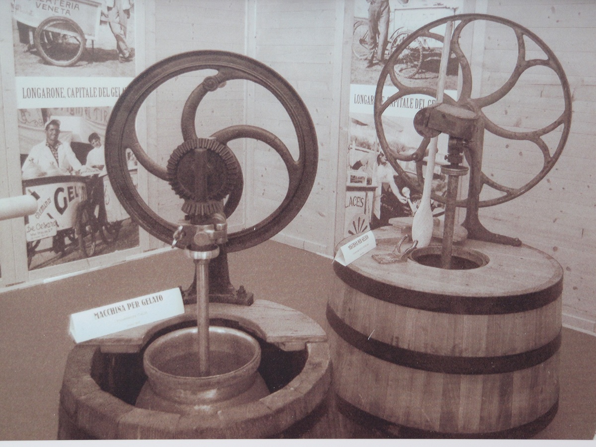 Nel ‘800 e fino ai primi decenni del ‘900 il gelato si faceva con l’ausilio di macchine manuali come questa esposta e rimessa in funzione alla terza edizione del “gelato festival artigianale” di Agugliano (An).