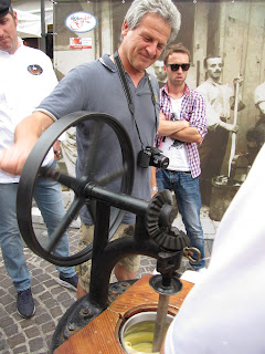 Franco si è offerto di aiutare il gelataio nelle varie fasi della lavorazione ed io incredula osservavo lo svolgersi della preparazione.