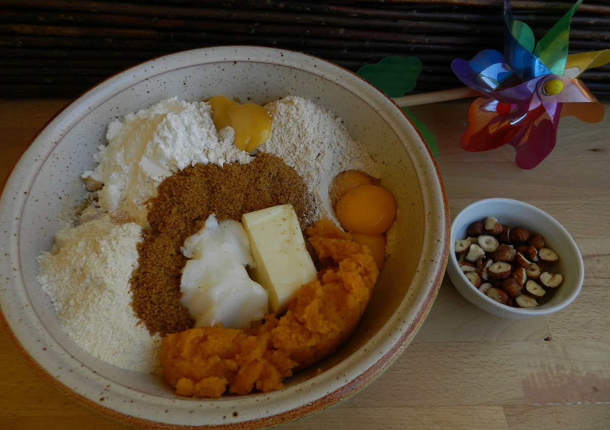 Impastate insieme tutti gli ingredienti tranne le nocciole, sino a ottenere un impasto sostenuto e malleabile