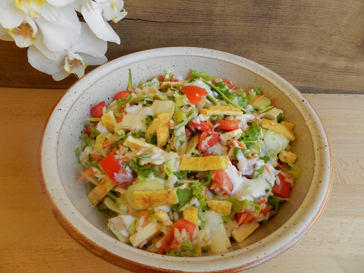 Piatto unico, da consumarsi prevalentemente nelle afose giornate estive. Genuino, salutare, leggero, ricco di sali minerali, veloce da preparare e molto gustoso.Potete prepararlo con cereali, verdure e formaggi preferiti. Noi talvolta usiamo il farro, la mozzarella,… o aggiungiamo le olive nere.