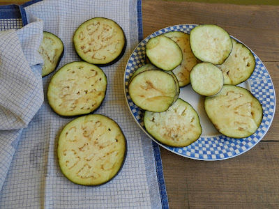 Tagliate a fette la melanzana, la sistemate in uno scolapasta e la cospargete di sale grosso.