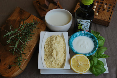 In un tegame versate la farina e aggiungete poco per volta il latte e l’acqua che avrete mischiato, stemperate e fate cuocere per 10 minuti, sino a ottenere una crema piuttosto densa. Salate, aggiungete il rosmarino, il succo del limone, lo yogurt e mescolate per amalgamare. Infine unite anche l’olio e lasciate coperto.