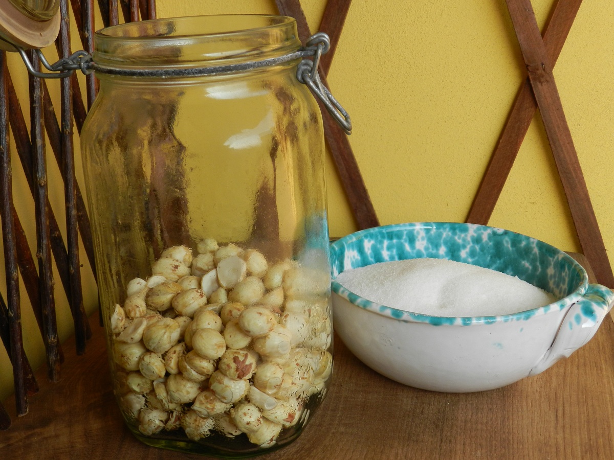 Raccogliete le nocciole di fine Giugno/ primi di Luglio, sgusciatele e mettetele in un vaso ermetico,
