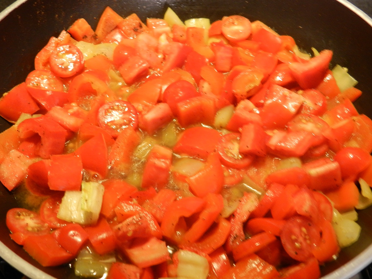 Aggiungete i pomodori tagliati a cubetti e li fate cuocere per altri 15 minuti