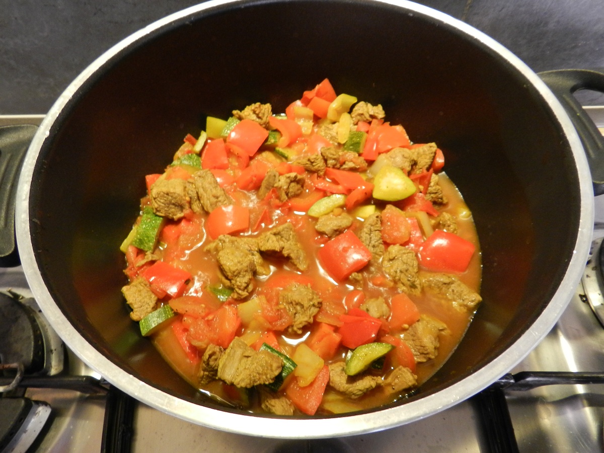Preparate le verdure e la carne tagliati a pezzetti