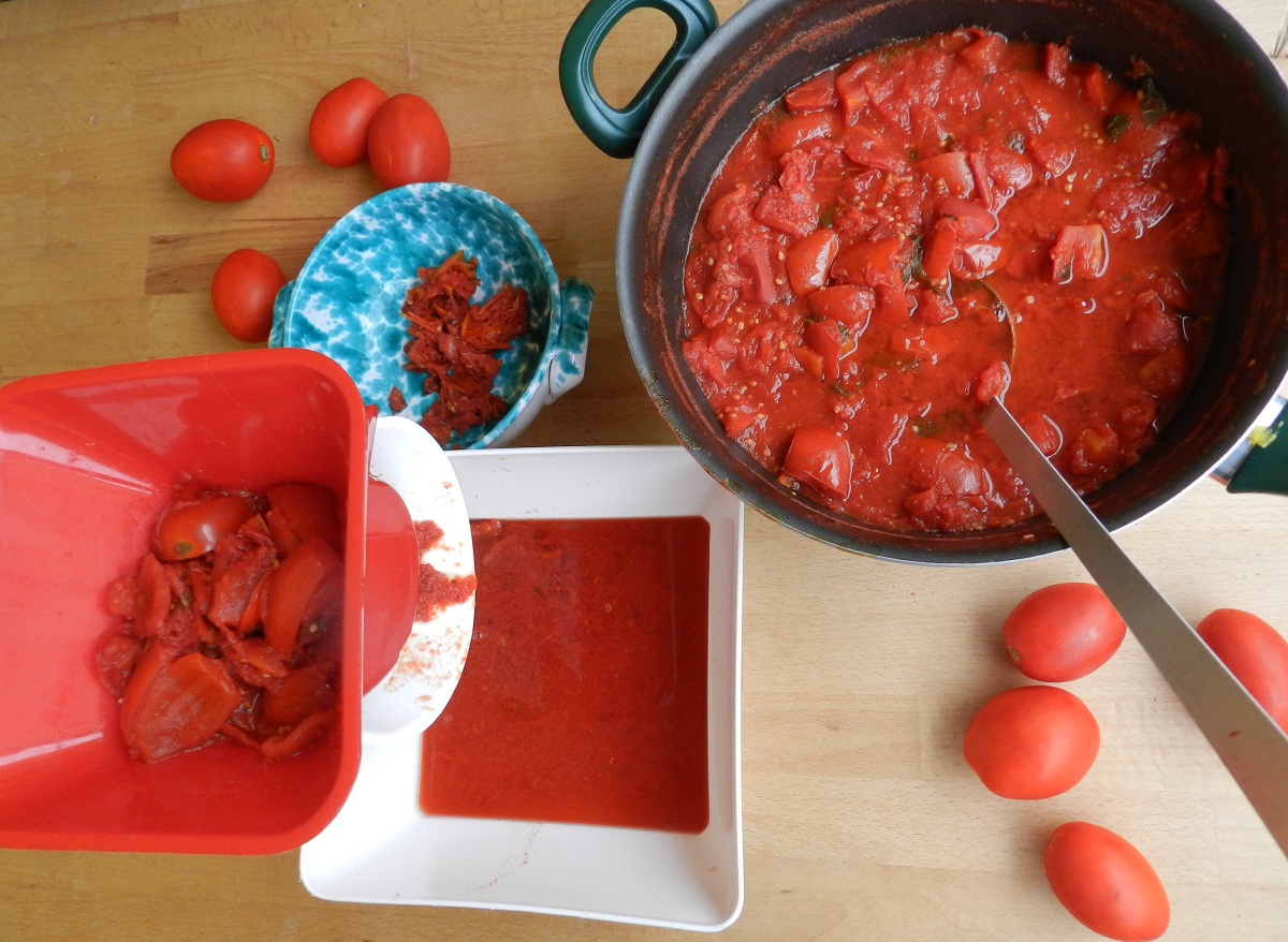 Passate il tutto nell’apposita macchina (passapomodoro) che elimina le bucce e i semi