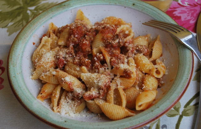 Un primo piatto tradizionale della cucina nazionale, consumato di frequente sulle tavole italiane, con sugo di carne preparato in svariati modi. La ricetta che abbiamo proposto, senza il consueto soffritto di cipolla, è leggera e appetitosa. Per coloro che preferiscono sapori più piccanti consigliamo di spolverare sul piatto già pronto, pepe e peperoncino.