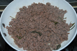 fate rosolare la carne di manzo macinata, salate, spolverate con gli aromi e fate cuocere per 15-20 minuti coperta.