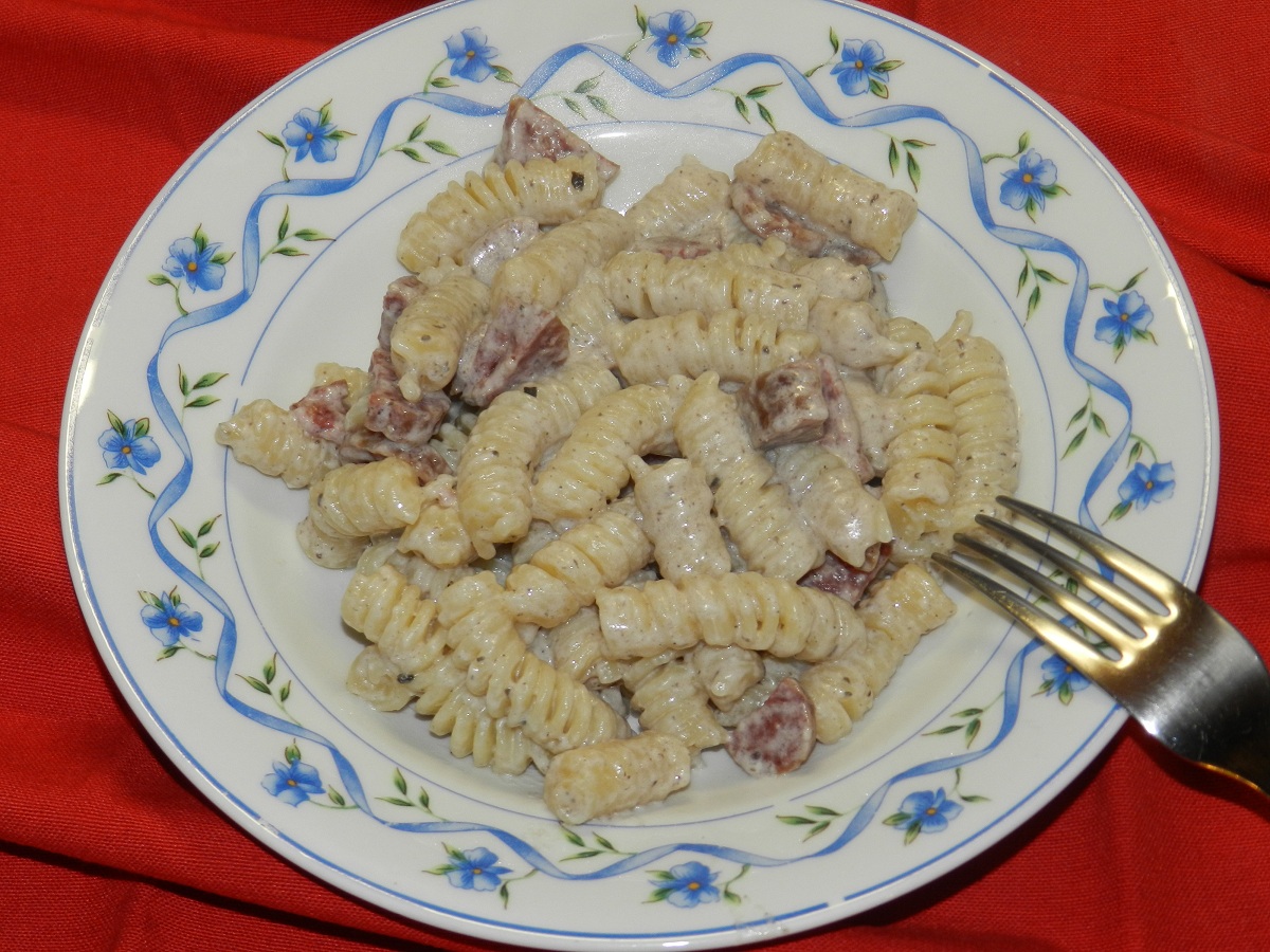 Un primo velocissimo da preparare e molto gustoso. Il merito di questa ricetta va a nostra nuora che ce l’ha servita una prima volta a Firenze e poiché l’abbiamo molto apprezzata ce l’ha rifatta a casa a nostra ed abbiamo deciso di pubblicarla sul blog. Adatta per chi pur avendo poco tempo a disposizione ha voglia di mangiare bene. Il sapore delicato della panna ben si associa al gusto intenso della salsiccia e delle olive nere.