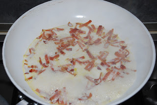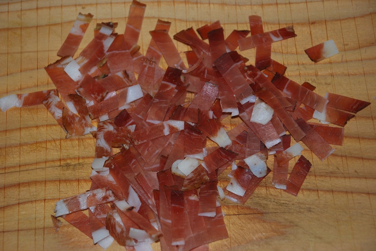 Tagliate lo spek a listarelle, lo mettete in una padella a rosolare col burro,
