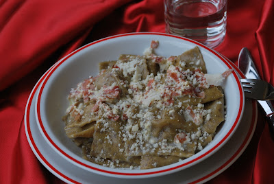 Una pasta rustica, genuina e dal colore intenso, in sintonia col condimento rossastro e saporito. Il ripieno è gustoso, leggermente amarognolo ed in tono con le tinte di questo primo piatto gradevole e raffinato.