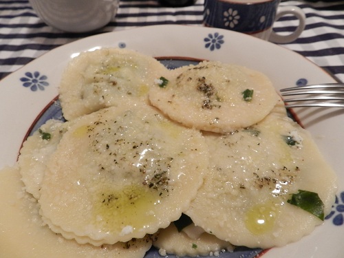 Fate rosolare il rosmarino tritato finemente in un tegamino con l’olio extra vergine d’oliva ed il burro ed aggiungete un pizzico di sale. Scolate un po’di ravioli, disponeteli in una zuppiera, ricopriteli con un po’ di condimento ed una spolverata di grana grattugiato, proseguite in questo modo sino ad aver scolato tutti i ravioli. Mettete nei piatti e servite ben caldi.