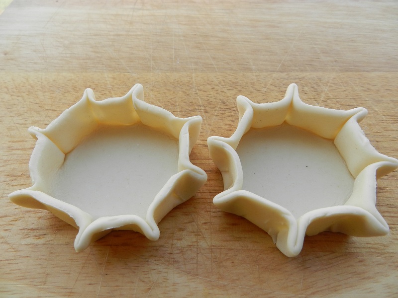 Fate passare la pasta più volte nell’apposita macchina, tirate delle strisce piuttosto spesse, alte circa 10 cm e ritagliate dei cerchi di 8-9 cm di diametro. Pizzicate la pasta sul bordo per dare la forma giusta,