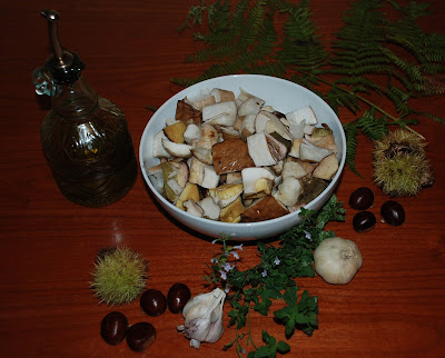 Raschiate con un piccolo coltello la base dei funghi per togliere la terra e spazzolate delicatamente il gambo ed il cappello per eliminare eventuali impurità.