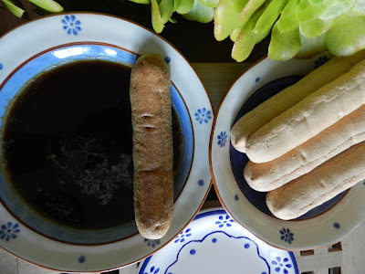 Intingete velocemente i savoiardi nel caffè zuccherato.