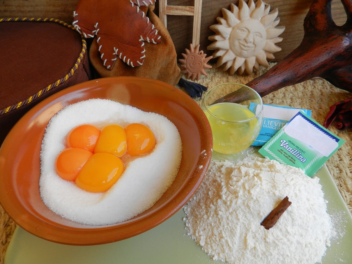 Sbattete i tuorli con lo zucchero sino a ottenere un composto spumoso, montate gli albumi a neve ben soda e spolverate con la cannella. Unite delicatamente tutti gli ingredienti, facendo attenzione a non sgonfiare il composto.