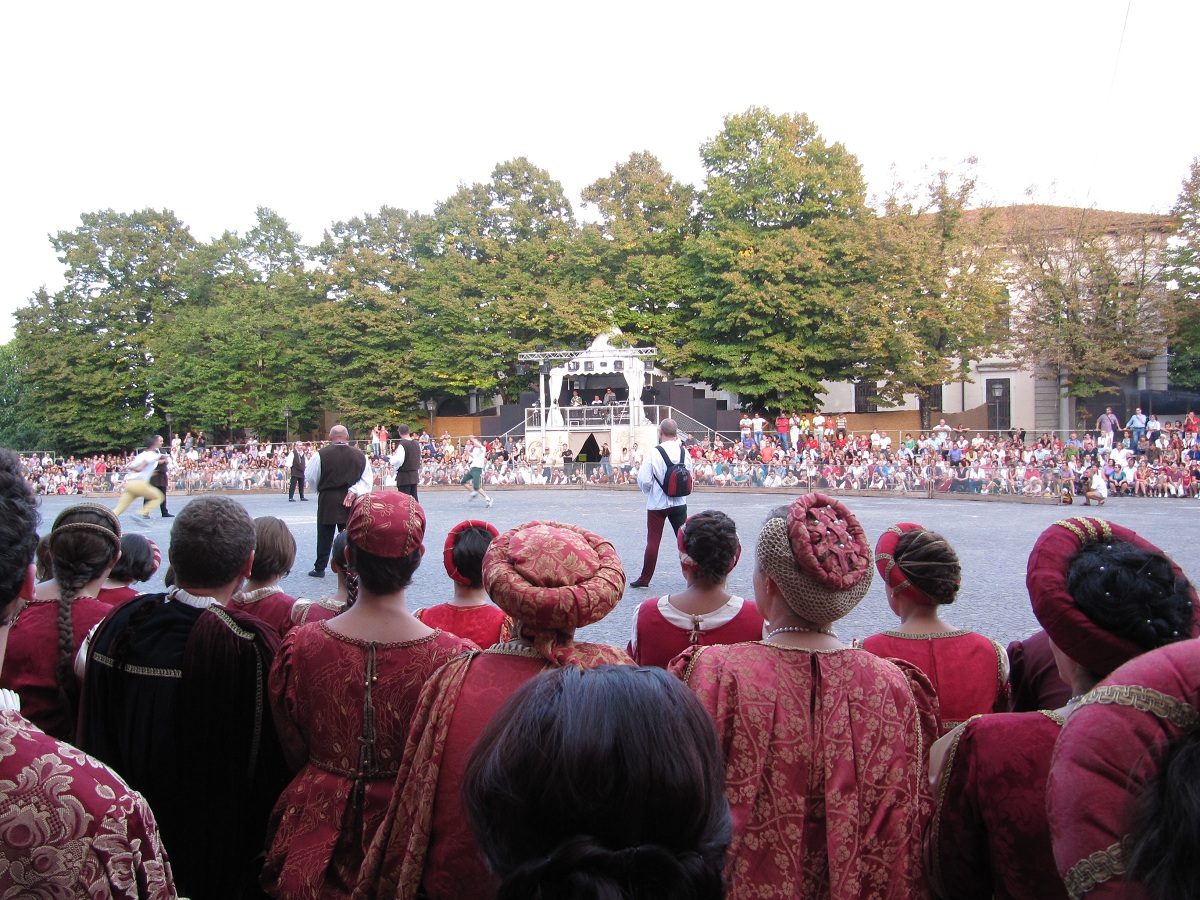 Sfilata in costume d’epoca nella piazza la domenica pomeriggio