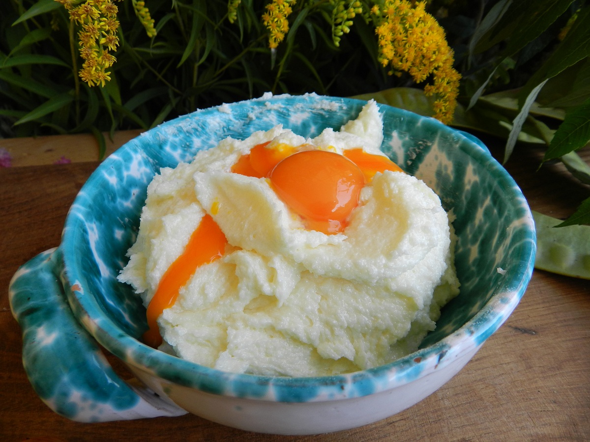 Unite una alla volta le uova ed i tuorli, rigirando di continuo.
