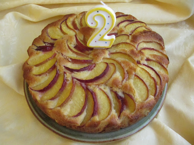Dolce poco calorico per le ridotte quantità di burro e zucchero, semplice e genuino , veloce da preparare. Buonissimo, molto profumato e di bella presenza. La buccia delle pesche dona colore alla torta e la rende più invitante, se preferite toglierla potete usare le pesche con la polpa rossastra ed avrete lo stesso effetto. Questa torta è stata fatta in occasione del compleanno del nostro nipotino, sotto alcuni scatti al festeggiato.