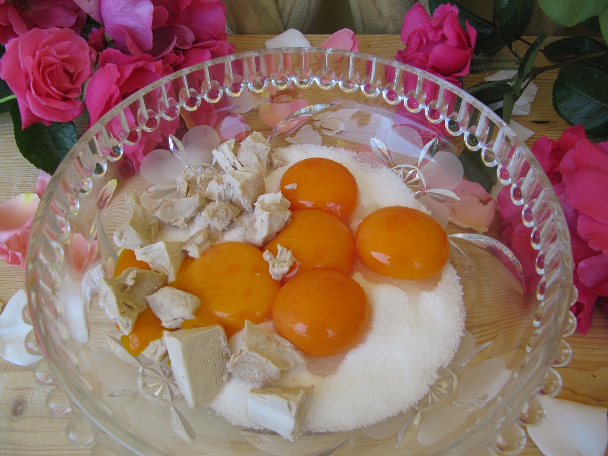 Lavorate con una frusta elettrica i tuorli con lo zucchero ed il lievito di birra,