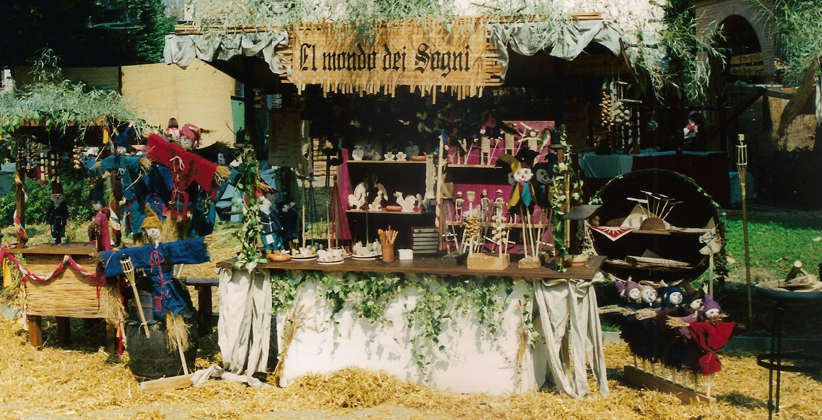 Scorcio delle nostre bancarelle, in fondo gioco del tiro al barattolo costruito da noi.