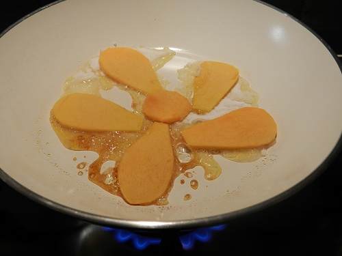 fateli caramellare con un po’ di zucchero in una piccola padella per 3 minuti,