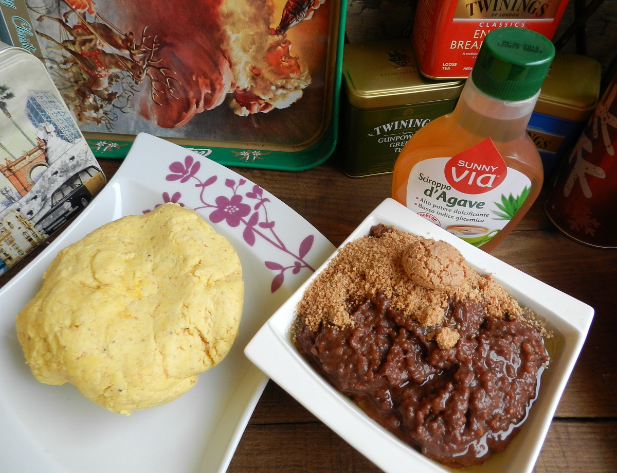 Aggiungete al ripieno gli amaretti sbriciolati, lo sciroppo d’ agave ed amalgamate mescolando.