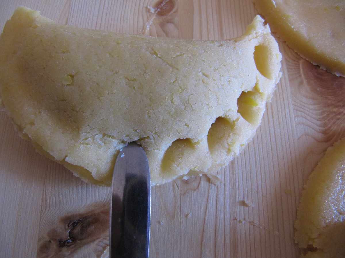 mettete nel mezzo un cucchiaino di marmellata, ripiegate la pasta su se stessa e premete i bordi con i rebbi di una forchetta o il manico di un cucchiaino.