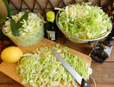Tagliate a liste sottili la verza e risciacquatela in acqua fredda