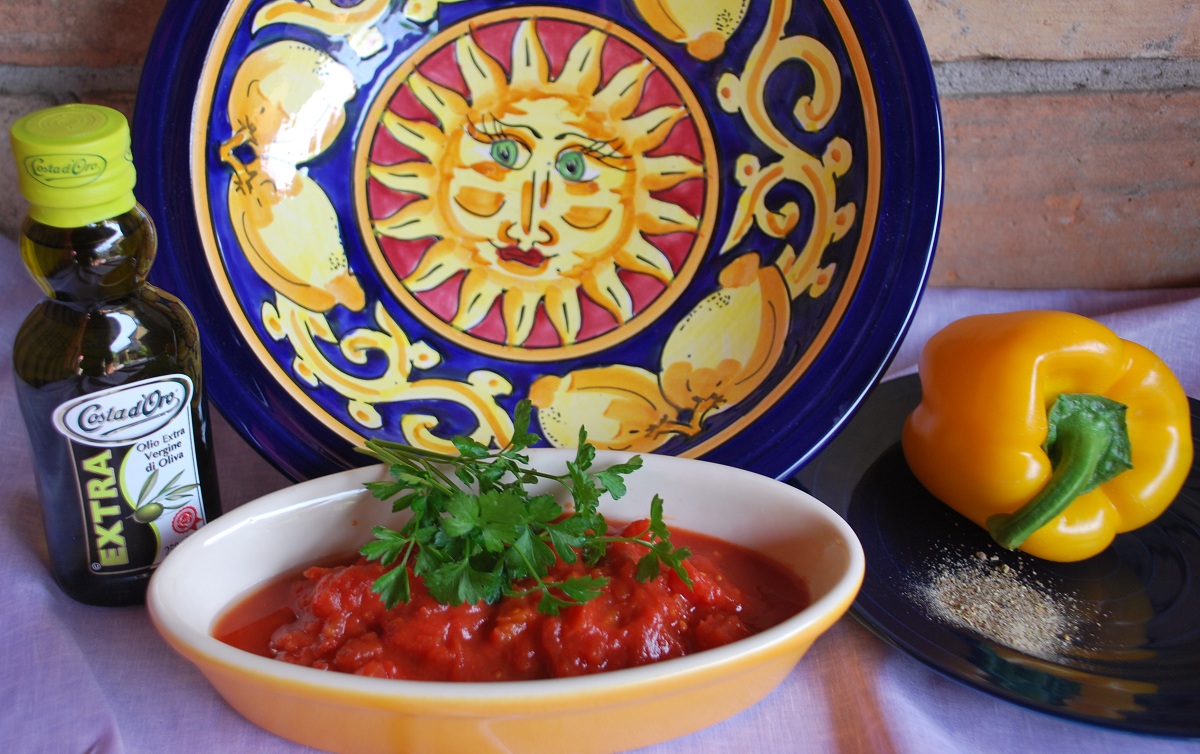 Preparate i piatti mettendo le verdure ripiene con un po’ d’intingolo, qualche listarella di peperone e una spolverata di prezzemolo triturato. Servite ben caldo.
